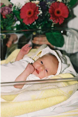 Josefine får vackra blommor på sin födelsedag och är mycket nöjd och glad.
